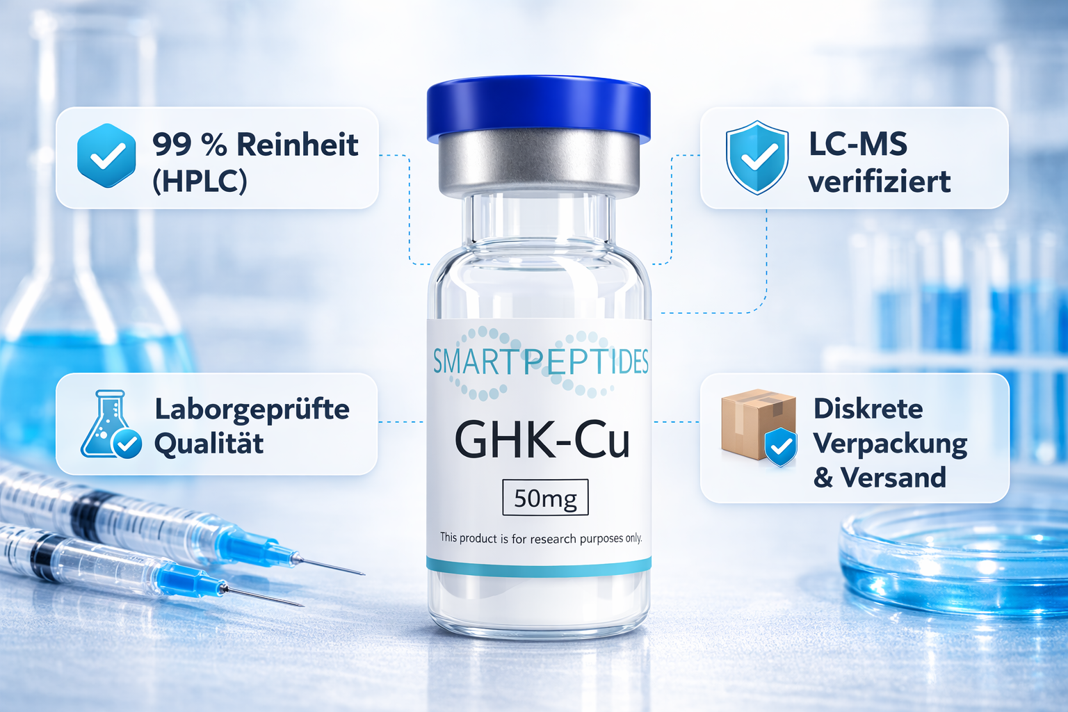 GHK-Cu ist ein synthetisches Forschungspeptid in Laborqualität, das für wissenschaftliche und analytische Untersuchungen entwickelt wurde. Jede Charge wird unter strengen Qualitätskontrollen hergestellt, um eine hohe Reinheit, Stabilität und Konsistenz für reproduzierbare Forschungsergebnisse zu gewährleisten.