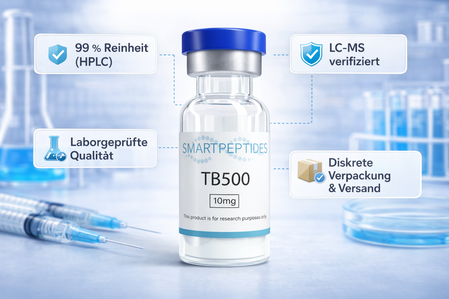 TB500 ist ein synthetisches Forschungspeptid in Laborqualität, das für wissenschaftliche und analytische Untersuchungen entwickelt wurde. Jede Produktionscharge wird unter strengen Qualitätskontrollen hergestellt, um eine hohe Reinheit, Stabilität und Konsistenz für reproduzierbare Forschungsergebnisse sicherzustellen.